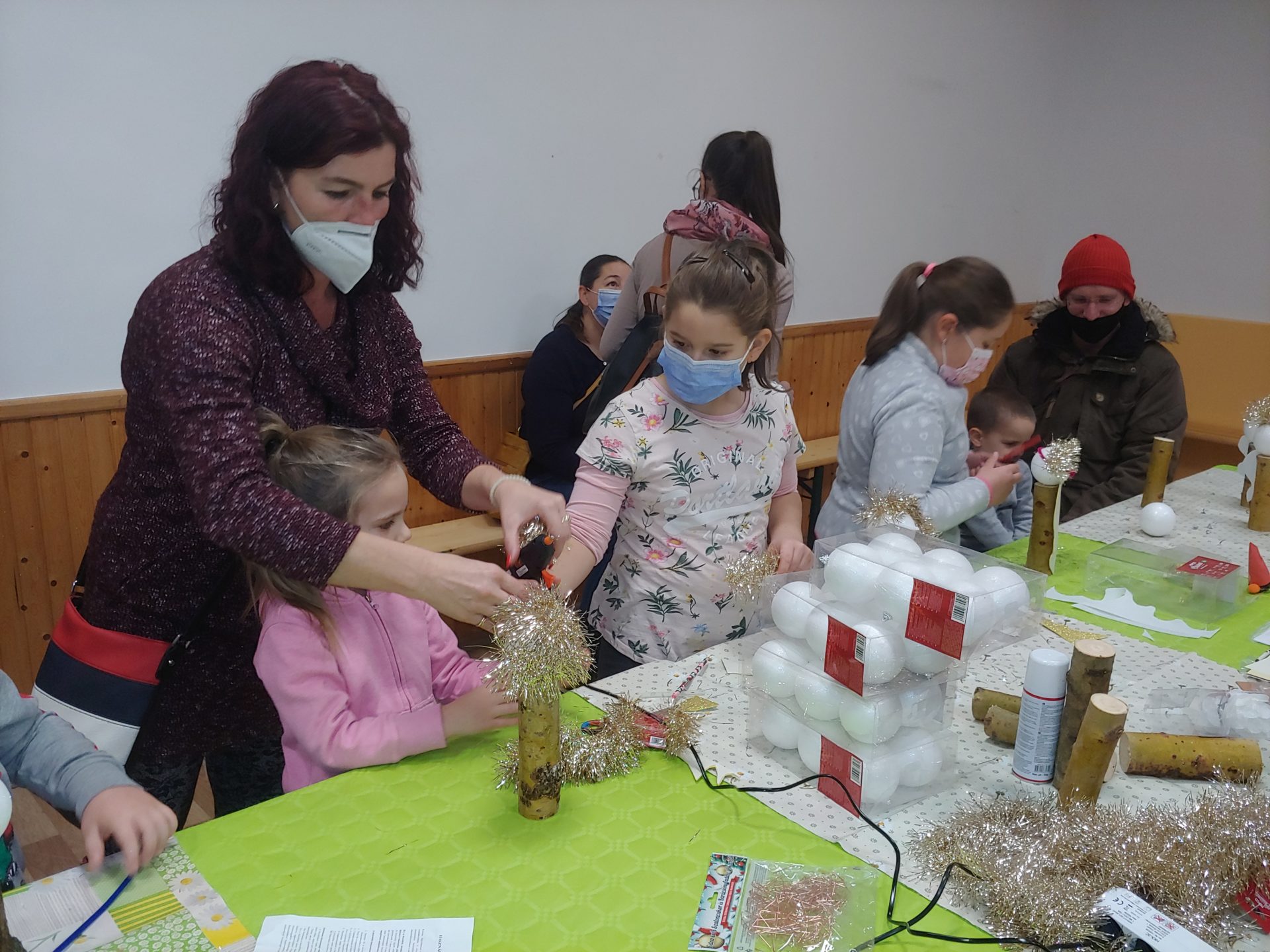Finomságokkal is kedveskedtek a kicsiknek tejszínhabos csokoládé formájában, míg a felnőtteket a forralt bor segítette a felmelegedésben. A kertben volt kézműves vásár is gyönyörű manócskákkal, horgolt játékokkal, fatárgyakkal.
