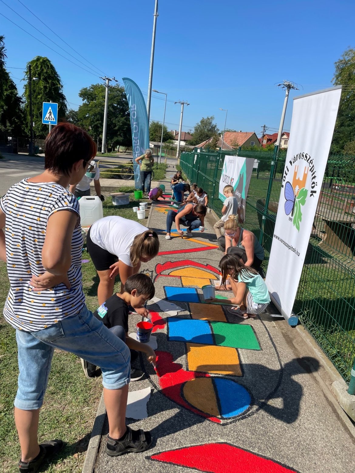 Két éve egy új kupakgyűjtő szívet állítottunk fel a Millenniumi parkban, ezzel az Egymásért-Közösen Mozgáskorlátozottak Egyesületét támogatjuk. A legutolsó kezdeményezésünk pedig a mesejárda, ami egy friss program. Három-négy évvel ezelőtt láttam egy településen, és elhatároztam, hogy Fóton is megvalósítjuk ezt. Megnyertük Kiss Eszter festőművész támogatását is, aki elkészítette a terveket, majd megszereztük az engedélyeket. Szeptember elején került sor az első mesejárda festésére sok önkéntes segítségével és a Nor-Color Kft támogatásával.