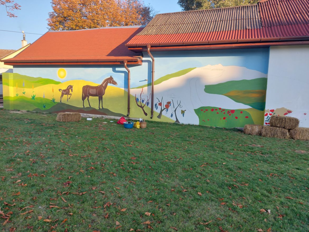 Korábbi cikkünkben jeleztük, hogy elkezdték a falfestészeti pályázat nyertes alkotásainak a festését a polgármesteri hivatal mellett megújuló tér hosszú falfelületén, a Sütöde kisbolt oldalfalán.