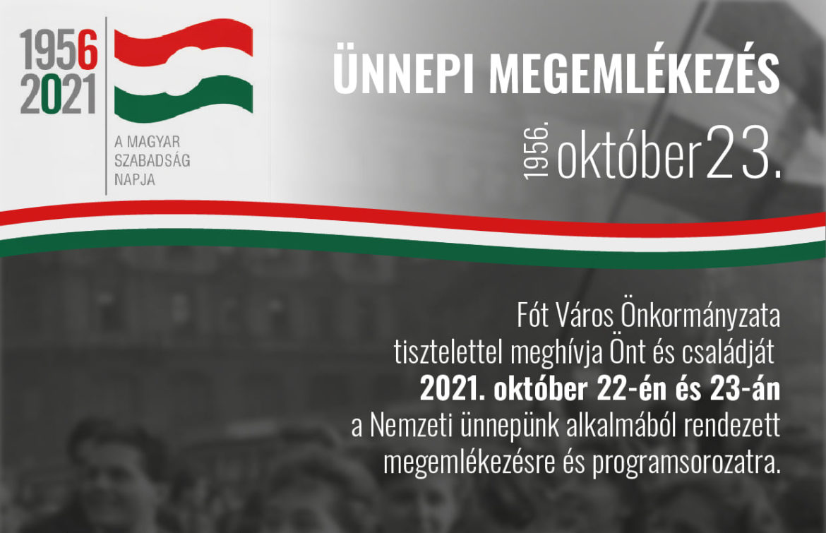 Fót Város Önkormányzata október 22-i és 23-i ünnepi megemlékezéssel tiszteleg az 1956-os forradalom és szabadságharc 65. évfordulóján.