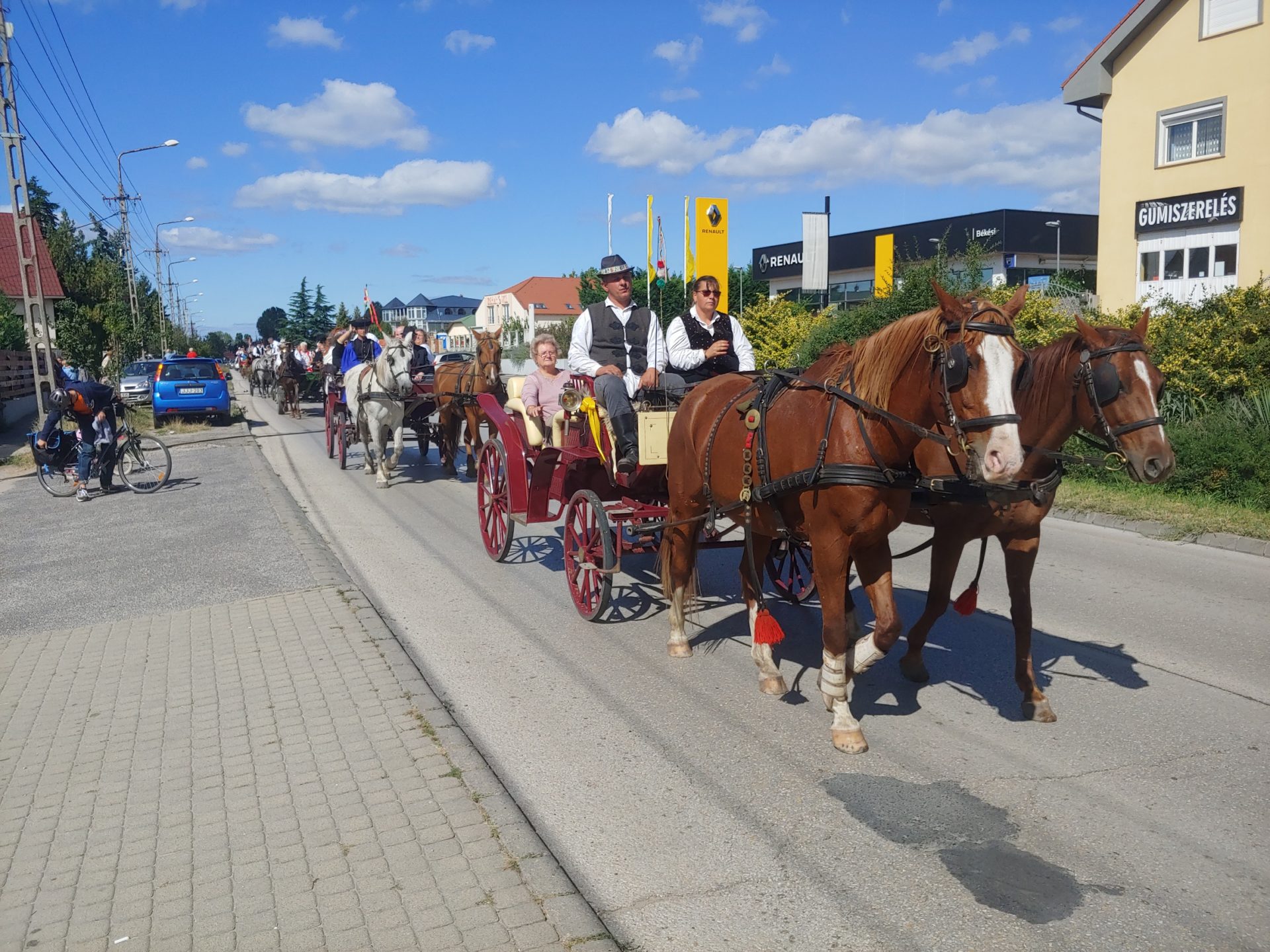 A többórás felvonulás átszelte a várost, mielőtt felért a Fáy Présházhoz, ahol Vass György, a város polgármestere, és Tuzson Bence, a térség országgyűlési képviselője köszöntötte a lovasokat és a közönséget.